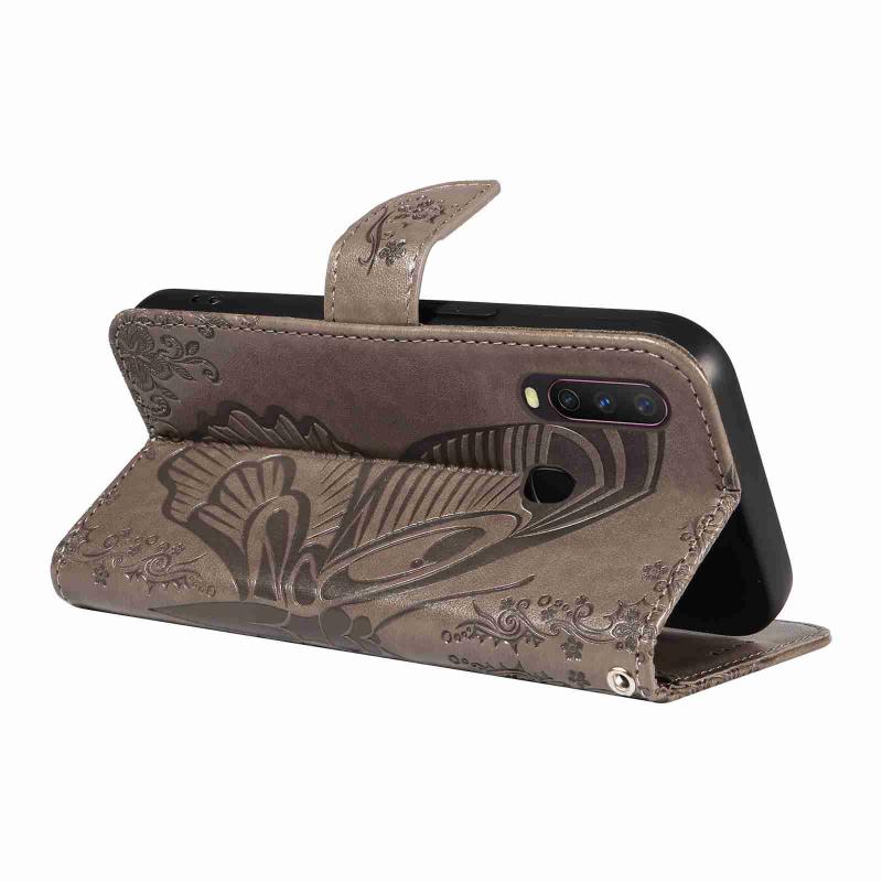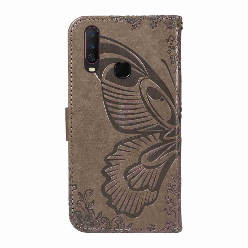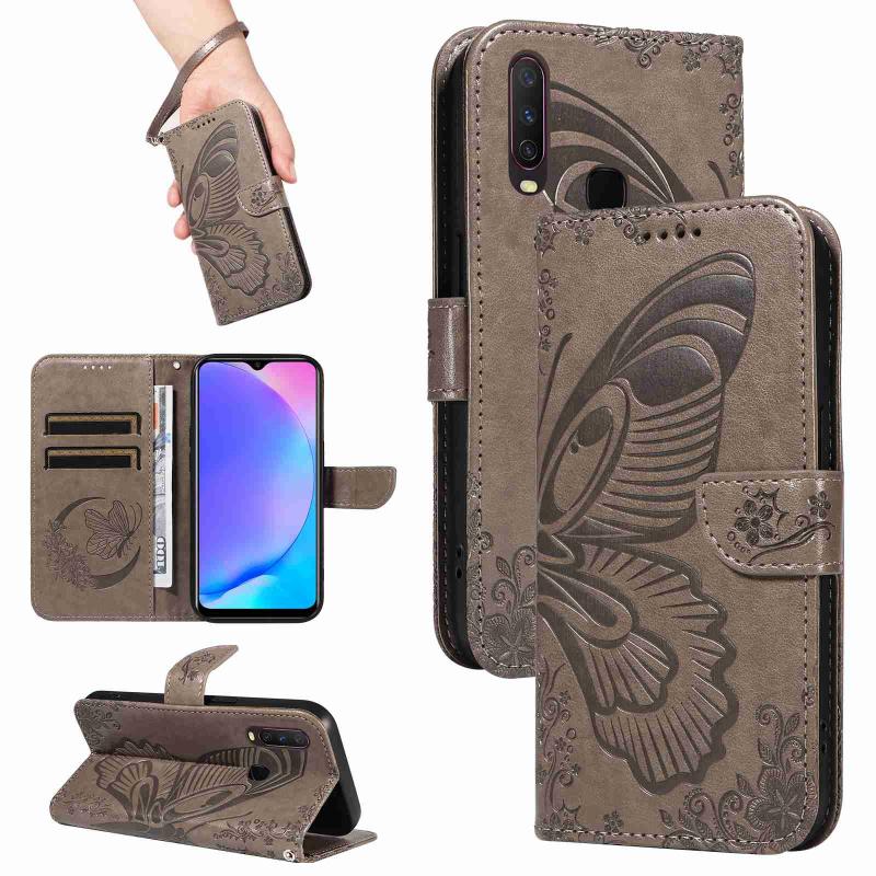 For vivo Y15 / Y17 Swallowtail Butterfly Embossed Leather Phone Case(Grey)
