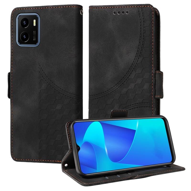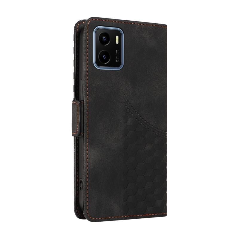 Θήκη τηλεφώνου για vivo Y15A 4G Global / Y01 με ανάγλυφο σχέδιο ρόμβου και δέρμα με αστερόσκονη (Μαύρο)