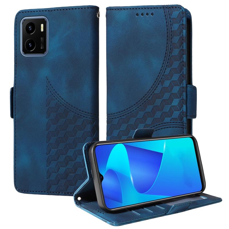 For vivo Y15A 4G Global / Y01 Embossed Rhombus Starry Leather Phone Case(Blue)