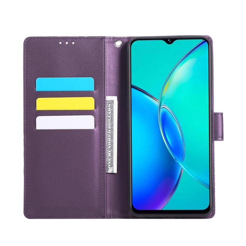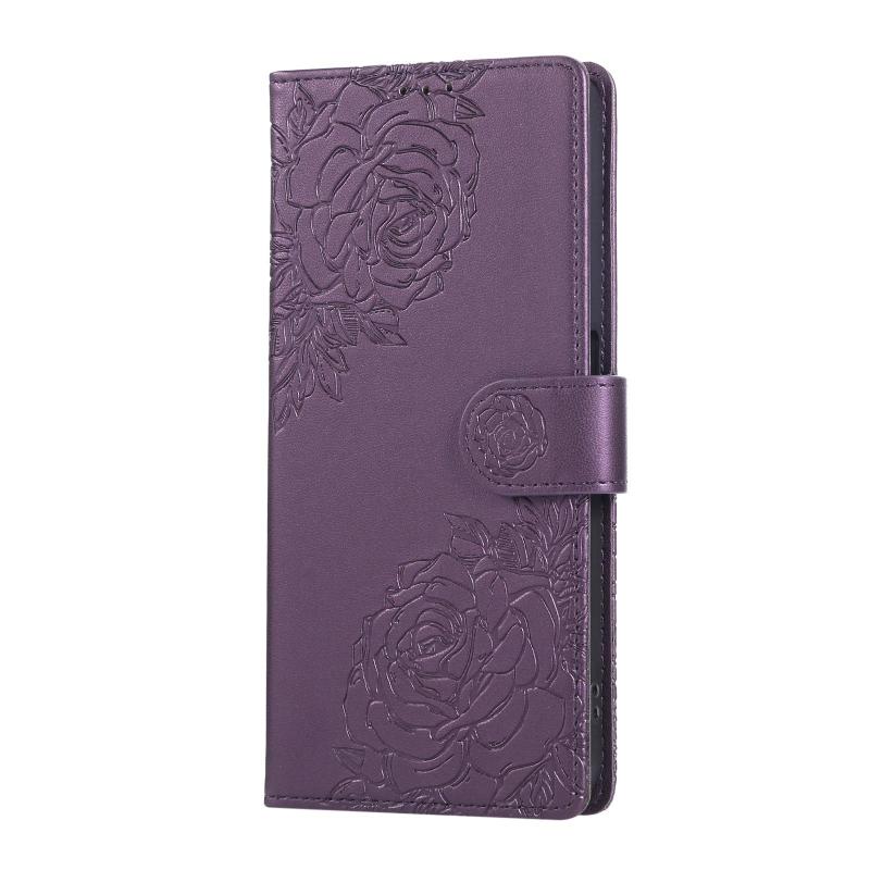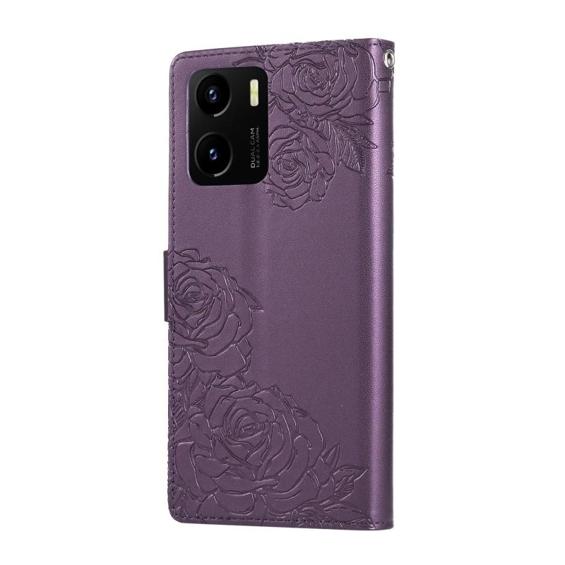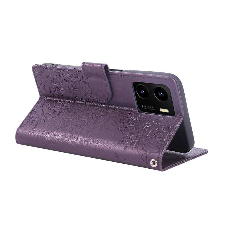 For vivo Y15s 2021 / Y10 Rose Flower Embossed 3-Card Slots Leather Phone Case(Deep Purple)