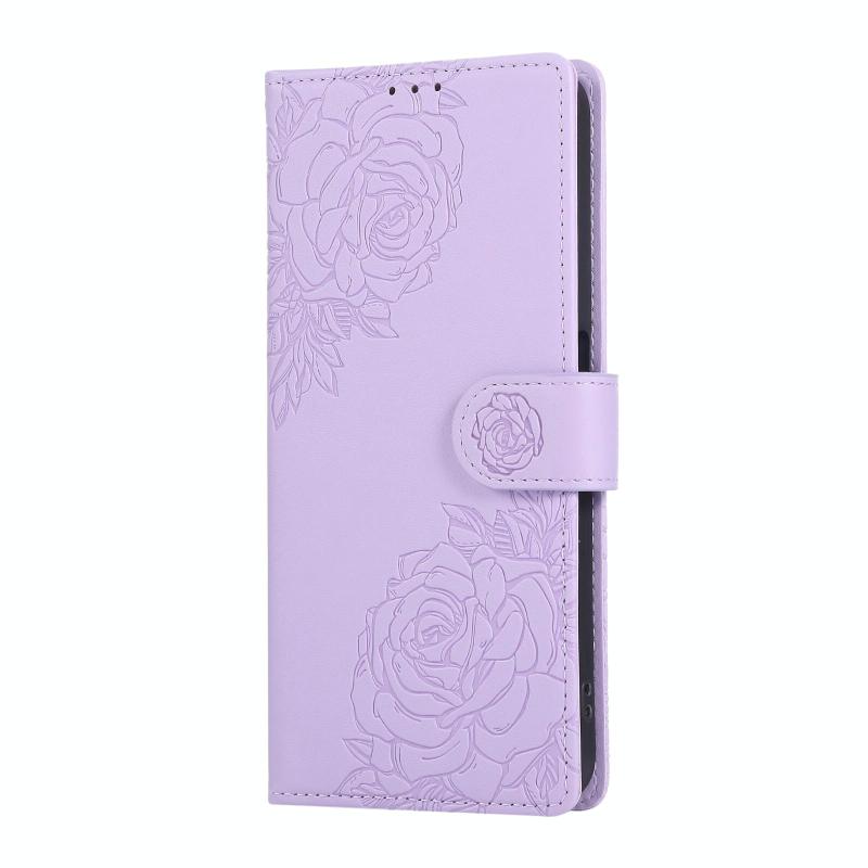 For vivo Y15s 2021 / Y10 Rose Flower Embossed 3-Card Slots Leather Phone Case(Purple)
