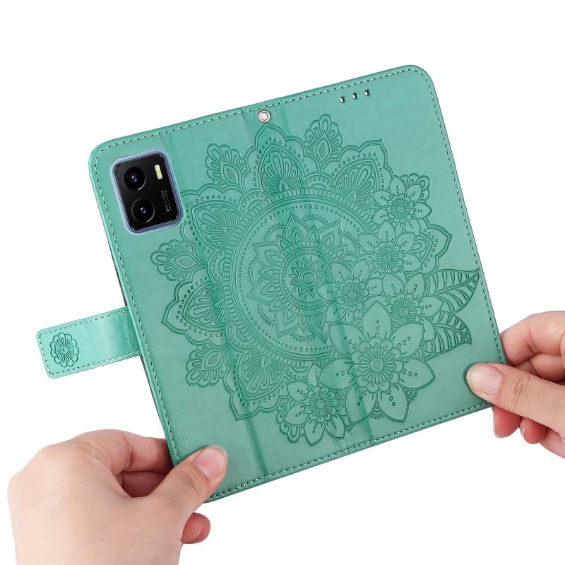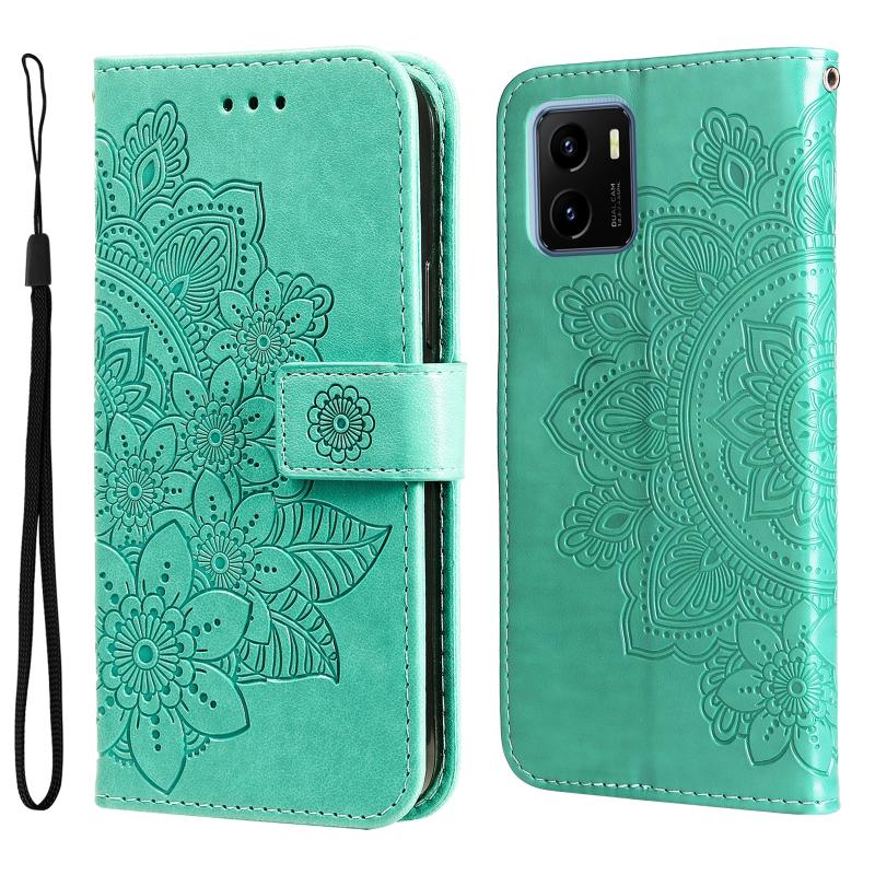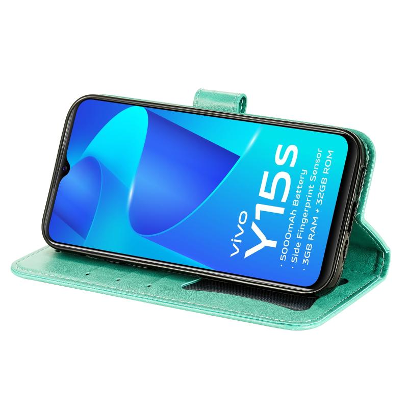 For vivo Y15s 2021 / Y15a 7-petal Flowers Embossed Flip Leather Phone Case(Green)