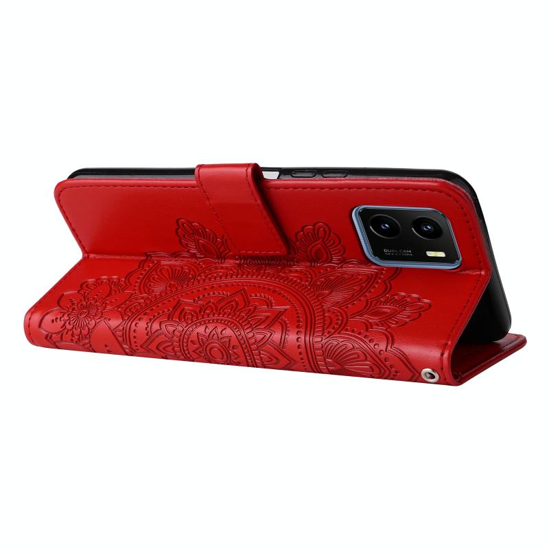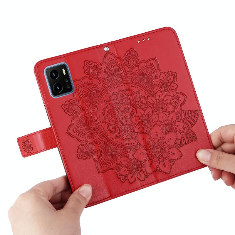 Θήκη τηλεφώνου από δέρμα με ανάγλυφα λουλούδια 7 πετάλων για vivo Y15s 2021 / Y15a (Χρυσό ροζ)