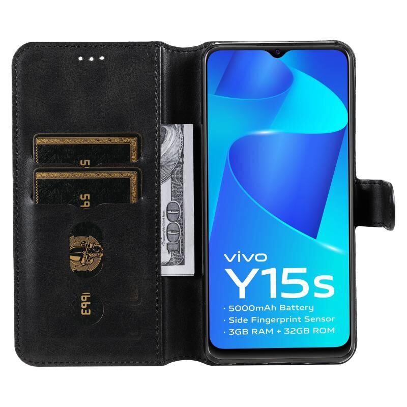 Για vivo Y15S 2021/Y15A Θήκη Δέρματος Οριζόντιας Αναδίπλωσης PU + TPU με Υφή Κλασικού Μοσχαρίσιου Δέρματος (Μαύρο)