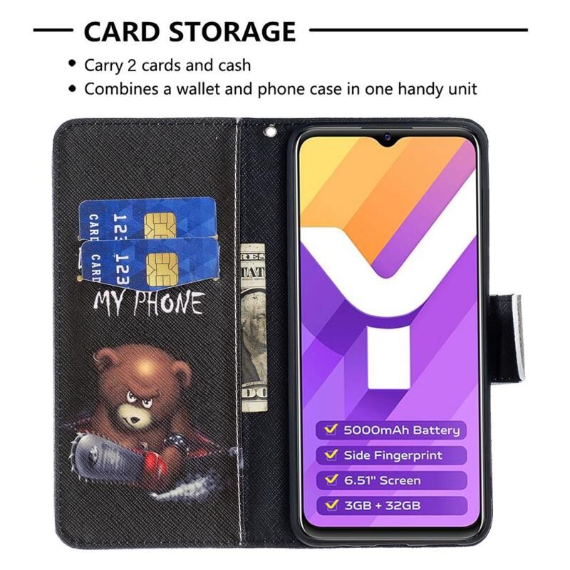 Θήκη τηλεφώνου δερμάτινη με σχέδιο ζωγραφικής και χρώματα για vivo Y15s (Αρκούδα)