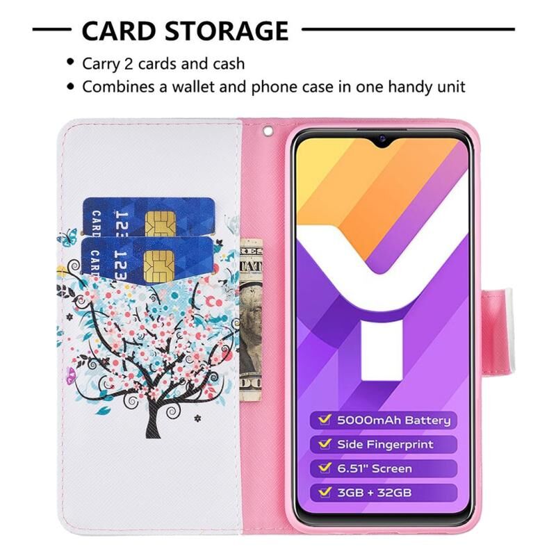 Θήκη τηλεφώνου δερμάτινη με έγχρωμο σχέδιο για vivo Y15s (Δέντρο)