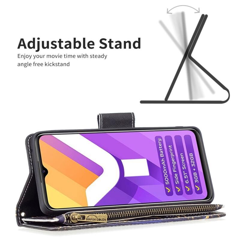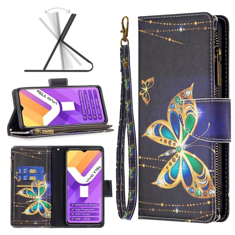Θήκη τηλεφώνου δερμάτινη οριζόντια με φερμουάρ και σχέδιο ζωγραφικής για vivo Y15s (Μεγάλη Πεταλούδα)
