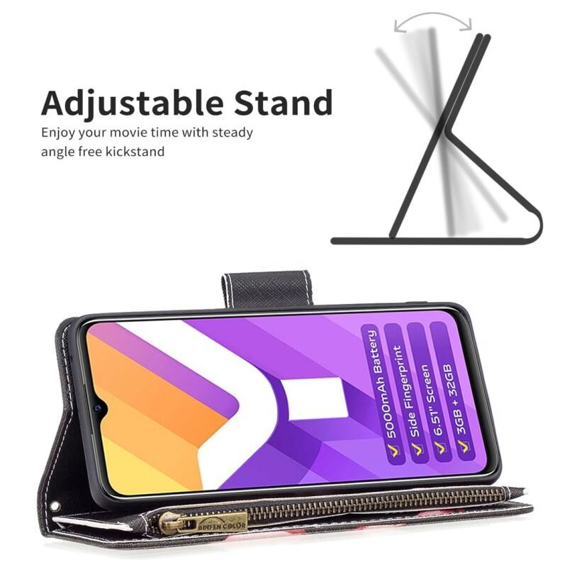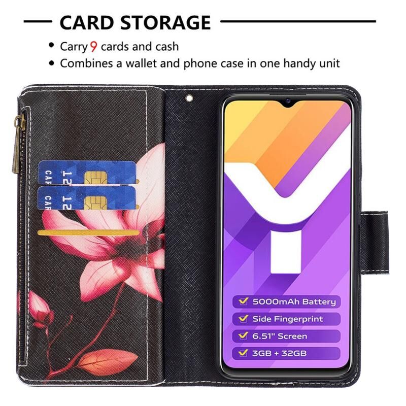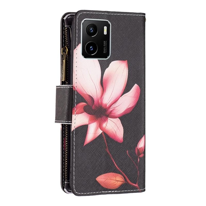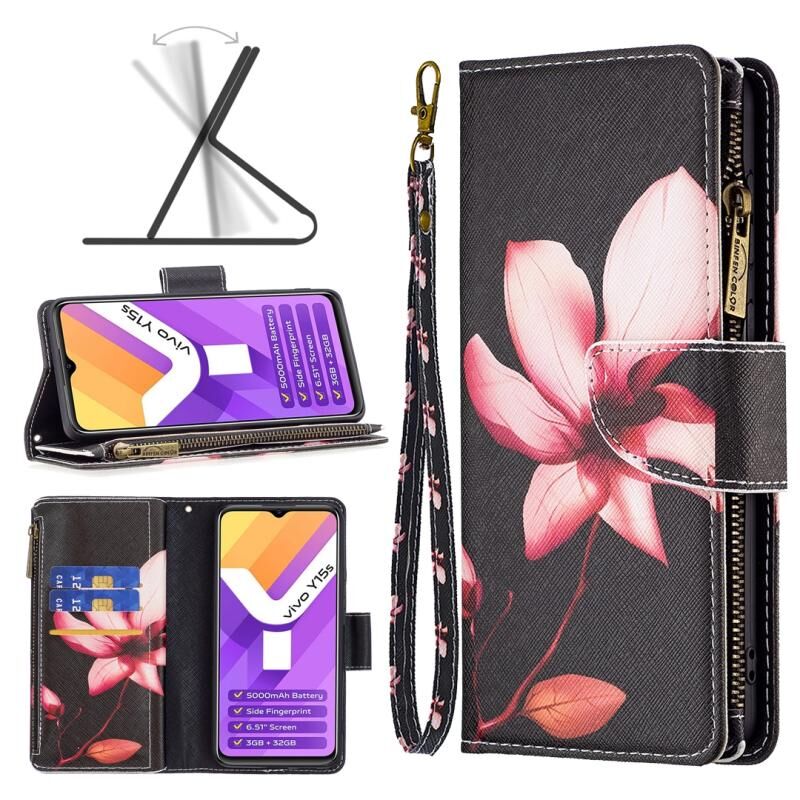 Θήκη τηλεφώνου από δέρμα με οριζόντιο άνοιγμα και φερμουάρ, με σχέδιο ζωγραφικής και χρώματα, για vivo Y15s (Λωτός)