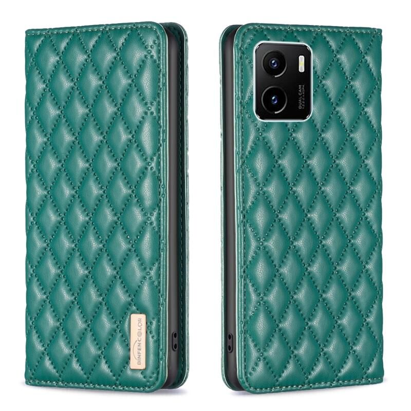 Θήκη τηλεφώνου Flip από Δερματίνα Μαγνητική Διάταξη Ρομβοειδούς Πλέγματος για vivo Y15s (Μαύρο)