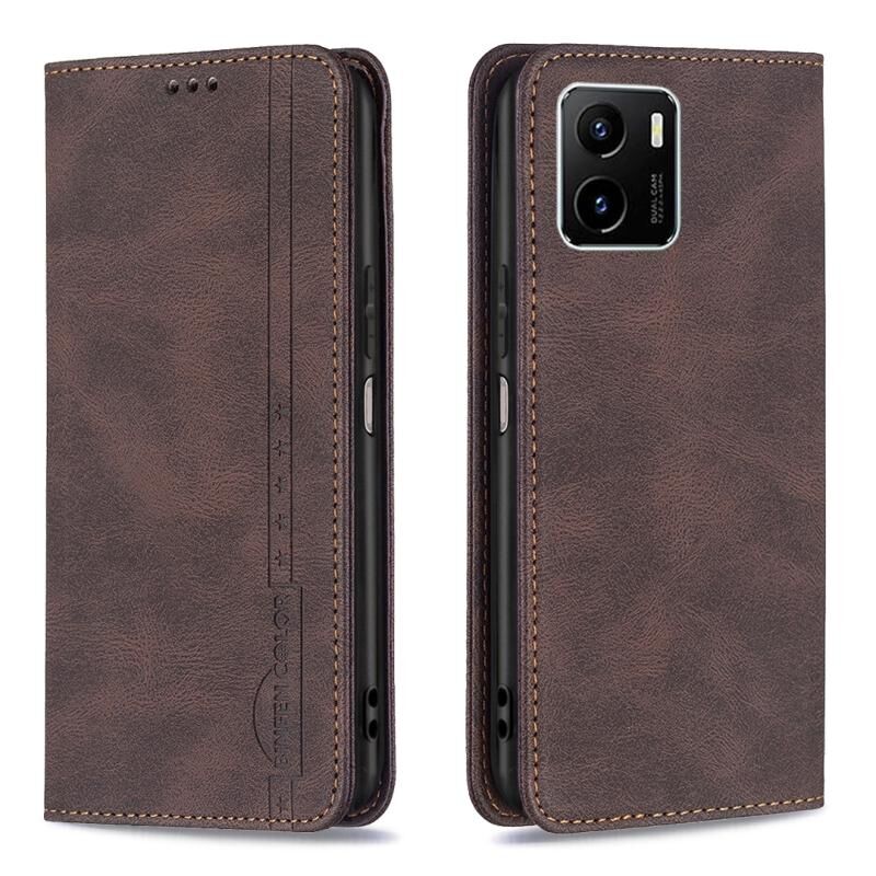 Για vivo Y15s Μαγνητικό RFID μπλοκάρισμα Anti-Theft δερμάτινη θήκη τηλεφώνου (καφέ)