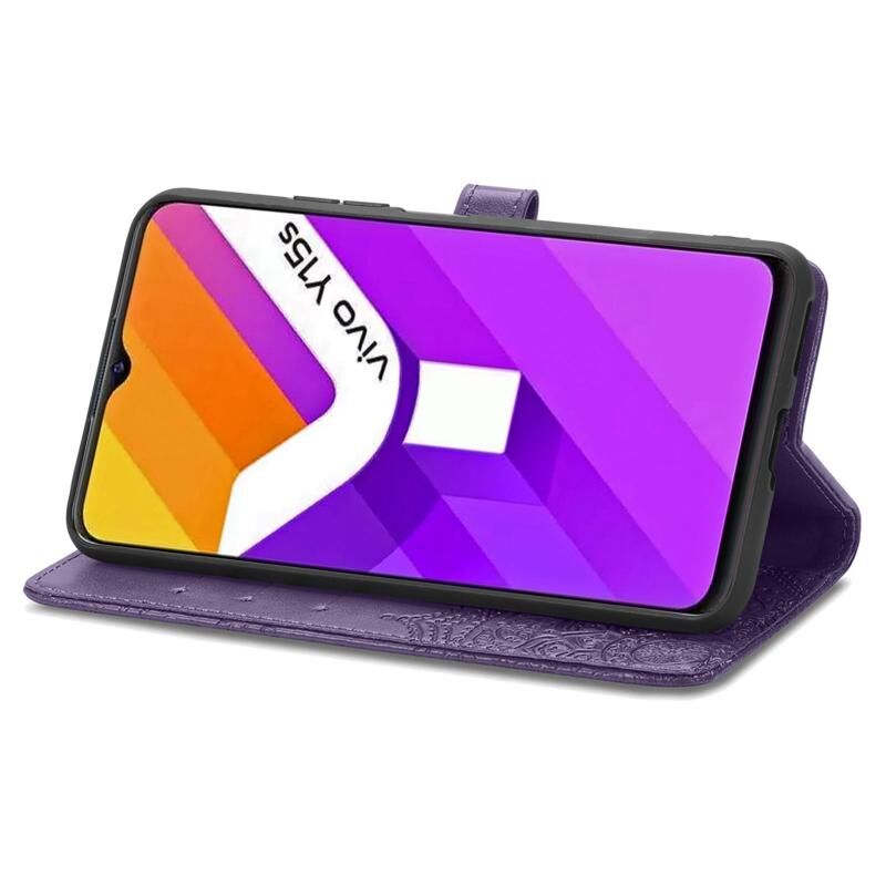 Για vivo Y15S Mandala λουλούδι ανάγλυφο οριζόντια Flip υπόθεση τηλεφώνου δέρμα (Μωβ)