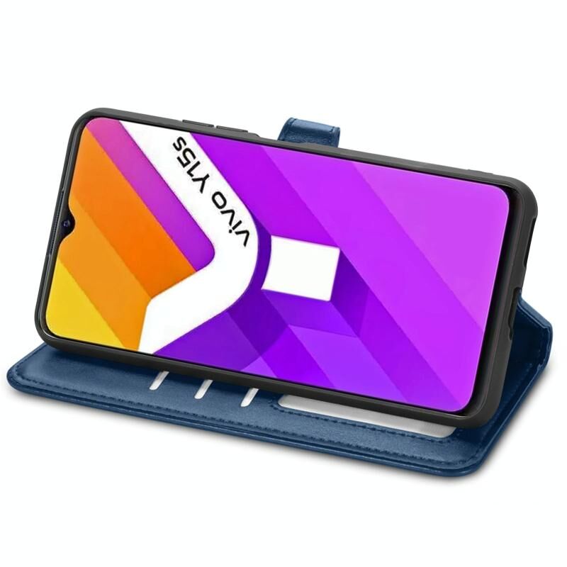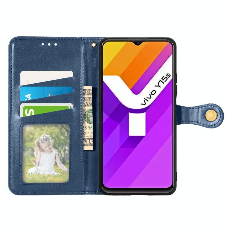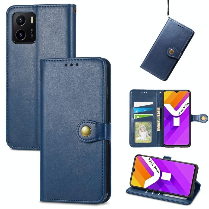Για vivo Y15s Αμιγές χρώμα δέρμα πόρπη υπόθεση τηλεφώνου (Μπλε)