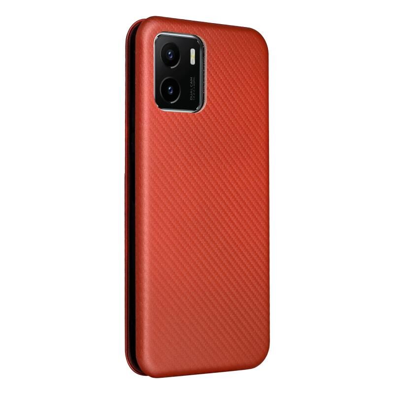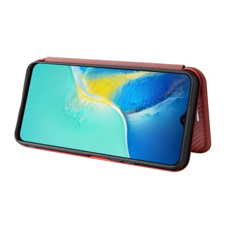 Θήκη τηλεφώνου από δέρμα με οριζόντιο άνοιγμα και υφή ανθρακονήματος για vivo Y15s / Y15a (Ροζ)