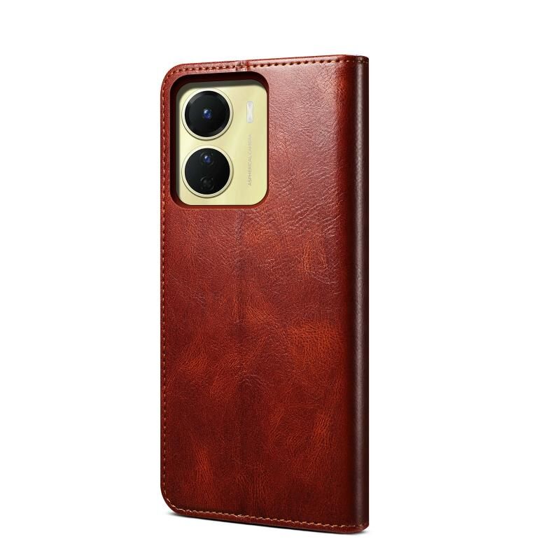 Θήκη τηλεφώνου από δέρμα με υφή Oil Wax Crazy Horse για vivo Y16 4G Global/Y02s 4G Global (Καφέ)