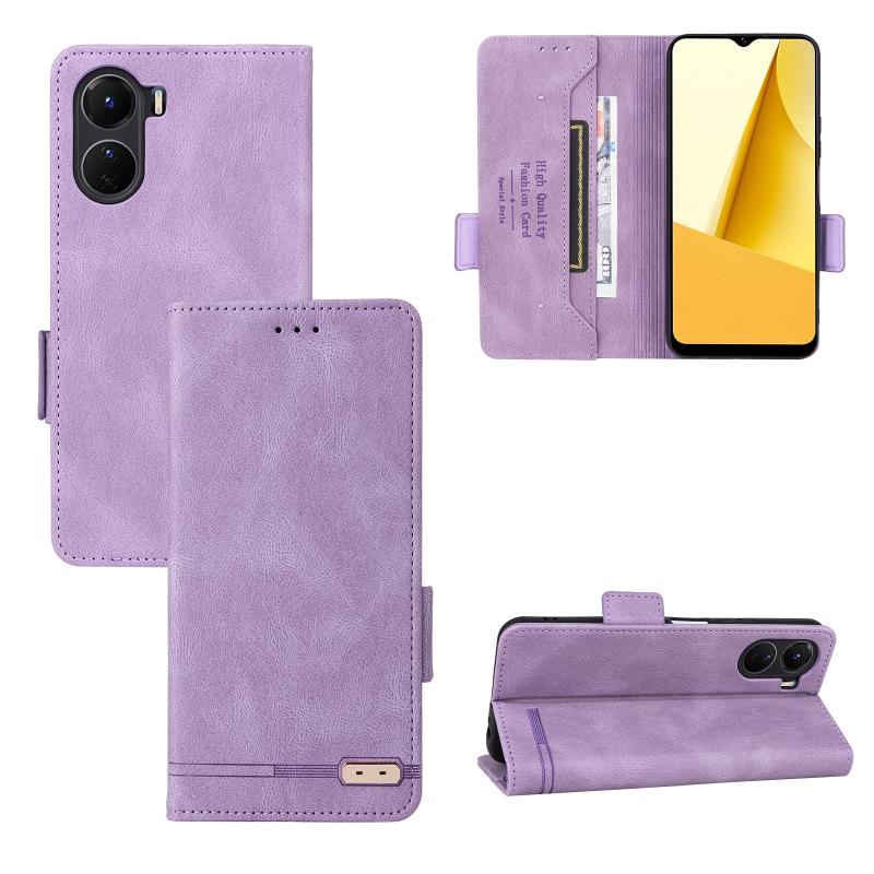 For vivo Y16 4G Magnetic Clasp Flip Leather Phone Case(Purple)