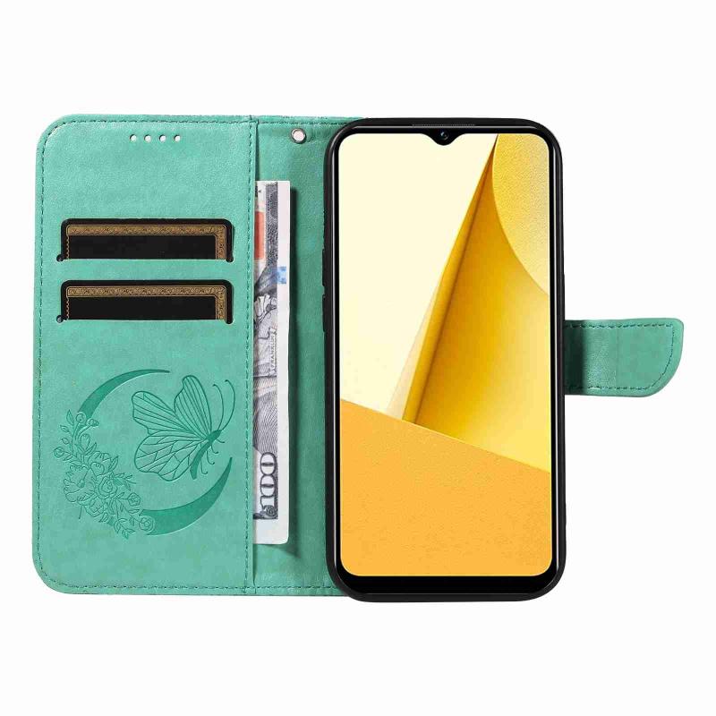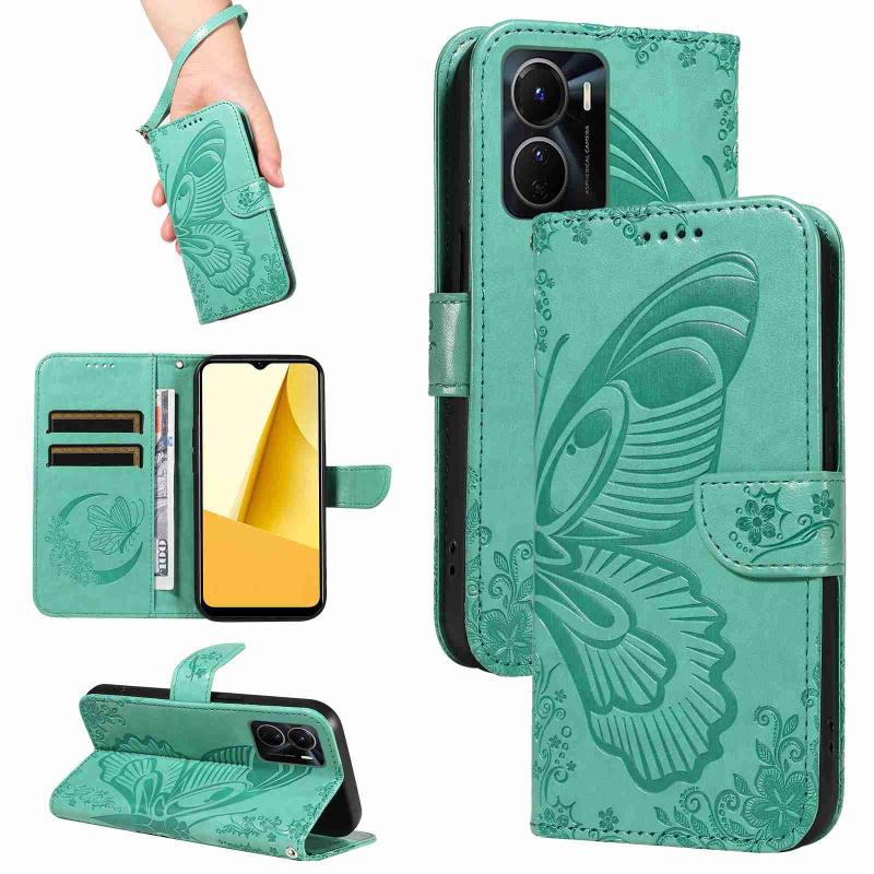 For vivo Y16 4G / Y02s Swallowtail Butterfly Embossed Leather Phone Case(Green)