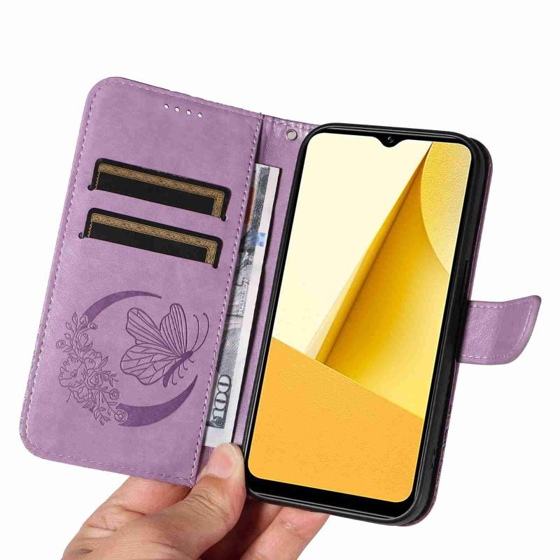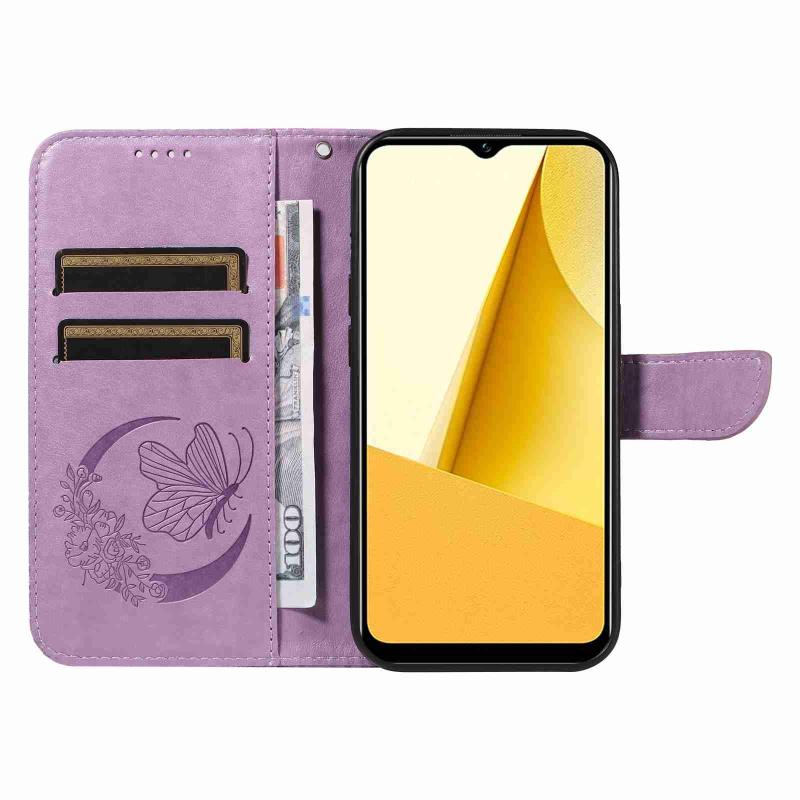 For vivo Y16 4G / Y02s Swallowtail Butterfly Embossed Leather Phone Case(Purple)