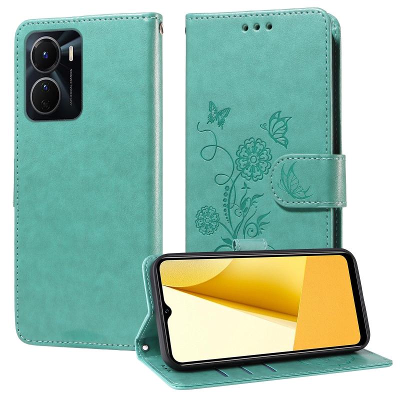 For vivo Y16 4G / Y02s / Y56 5G Global Embossed Butterfly Flowers Leather Phone Case(Green)