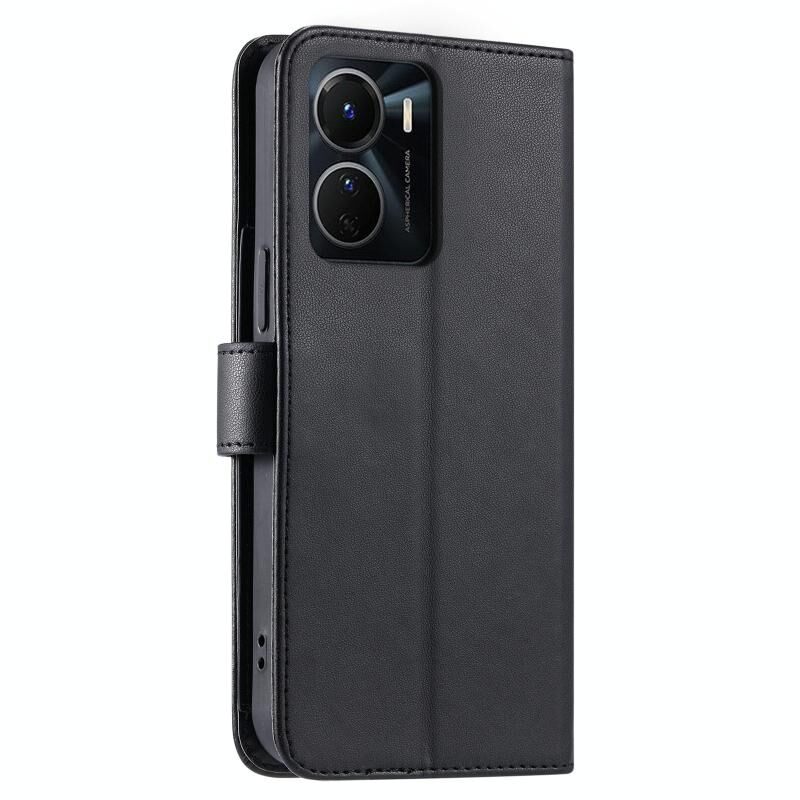 Για το vivo Y16 4G / Y56 5G / Y02s 4G δαχτυλίδι πόρπη ρομβοειδής δερμάτινη θήκη τηλεφώνου (μαύρο)