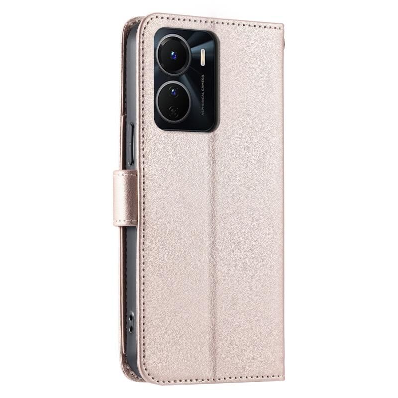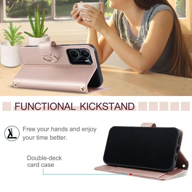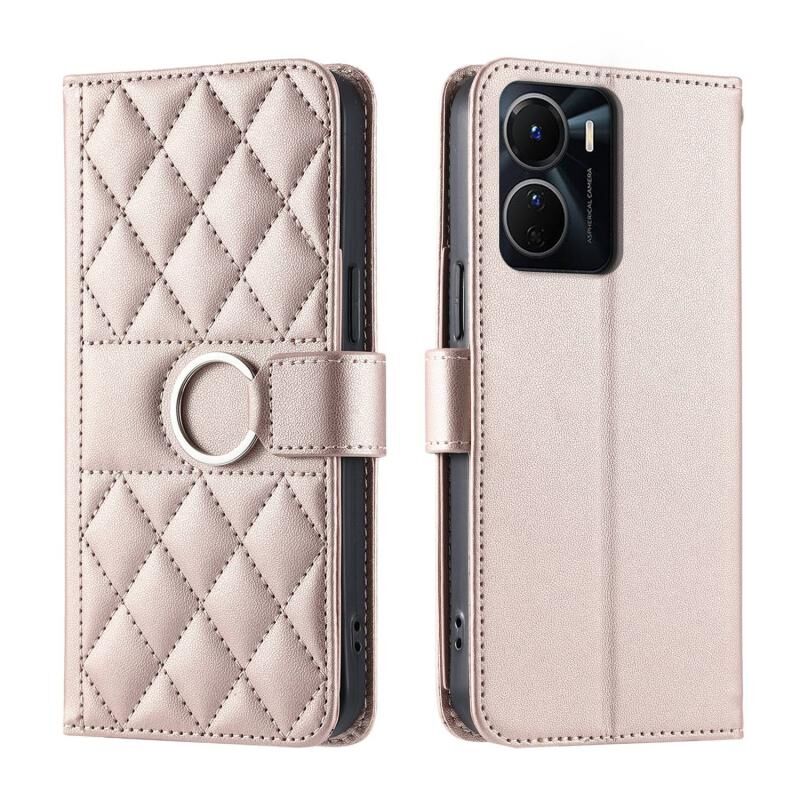 Για το vivo Y16 4G / Y56 5G / Y02s 4G δαχτυλίδι πόρπη ρομβοειδής δερμάτινη θήκη τηλεφώνου (ροζ χρυσό)