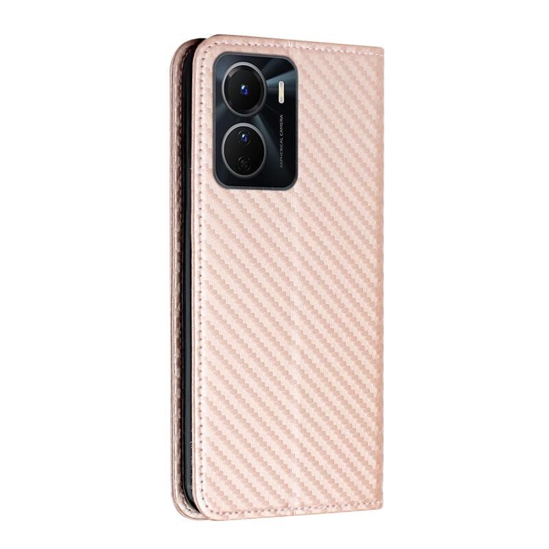 Για vivo Y16 Carbon Fiber Texture μαγνητική Flip δέρμα τηλέφωνο υπόθεση (Rose Gold)