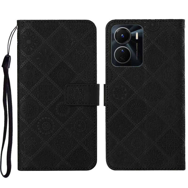Θήκη τηλεφώνου δερμάτινη με ανάγλυφο σχέδιο εθνοτικού στυλ για vivo Y16 (Λευκό)