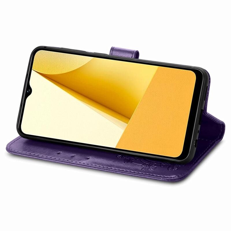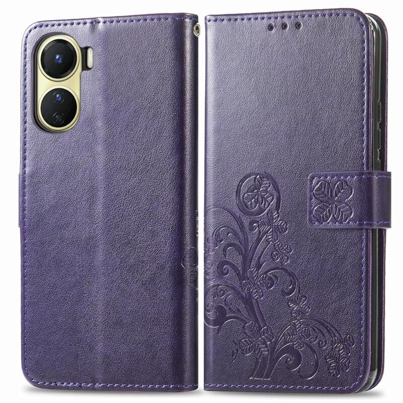 Για vivo Y16 Τέσσερα φύλλα κούμπωμα ανάγλυφο αγκράφα δερμάτινη θήκη τηλεφώνου (μωβ)