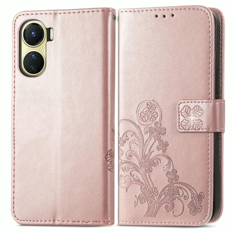 Για vivo Y16 Four-leaf κούμπωμα ανάγλυφο πόρπη δερμάτινη θήκη τηλεφώνου (Rose Gold)