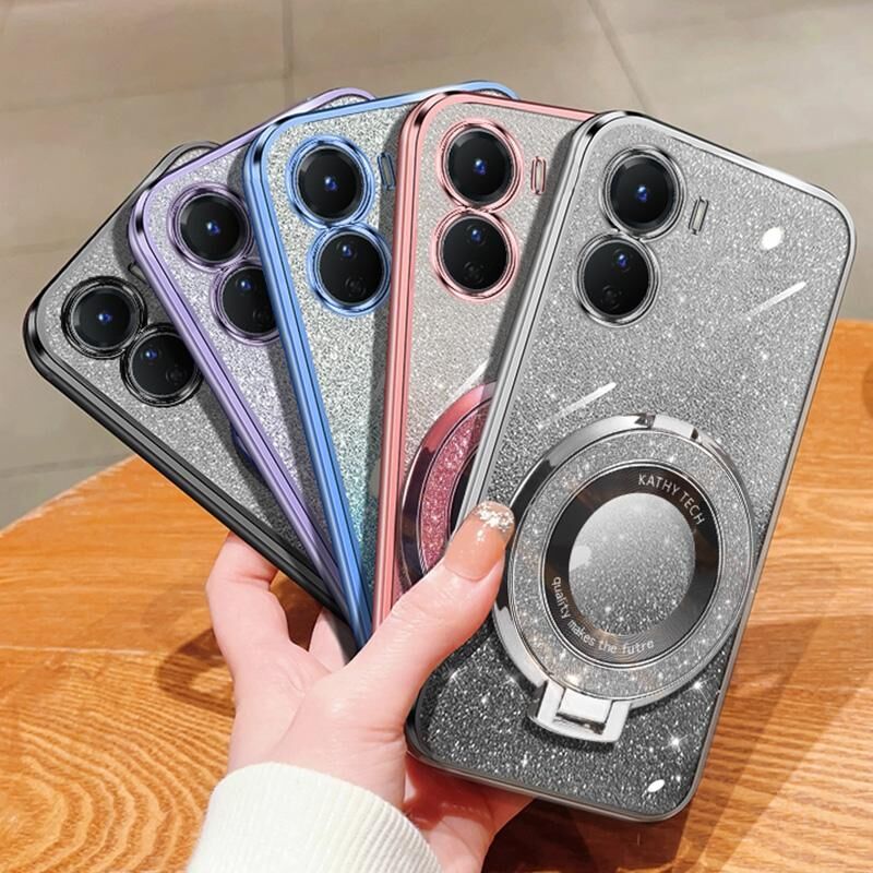 Θήκη τηλεφώνου TPU για vivo Y16 με επιμετάλλωση, διαβαθμισμένη λάμψη, στρογγυλή βάση (Ροζ)