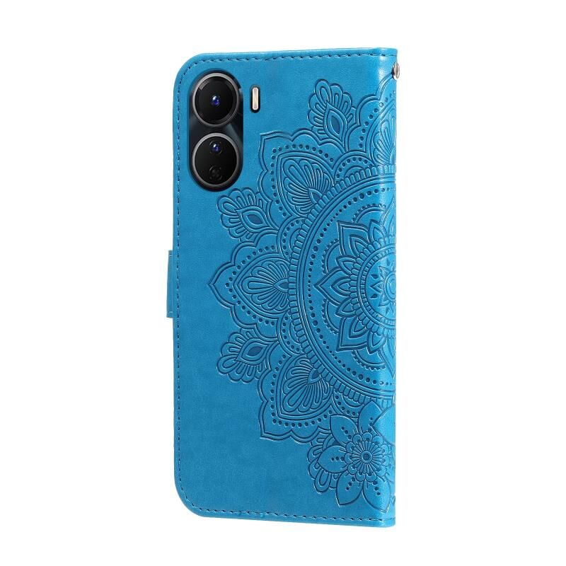 Για το vivo Y16 / Y02s 7-πέταλο λουλούδια ανάγλυφη δερμάτινη θήκη τηλεφώνου (μπλε)