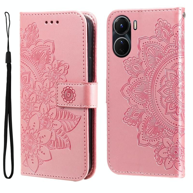 Για το vivo Y16 / Y02s 7-πέταλο λουλούδια ανάγλυφη δερμάτινη θήκη τηλεφώνου (ροζ χρυσό)