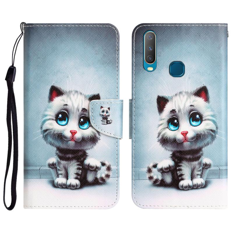 Θήκη τηλεφώνου από δέρμα με σχέδια για vivo Y17 / Y12 (Μπλε Μάτια)