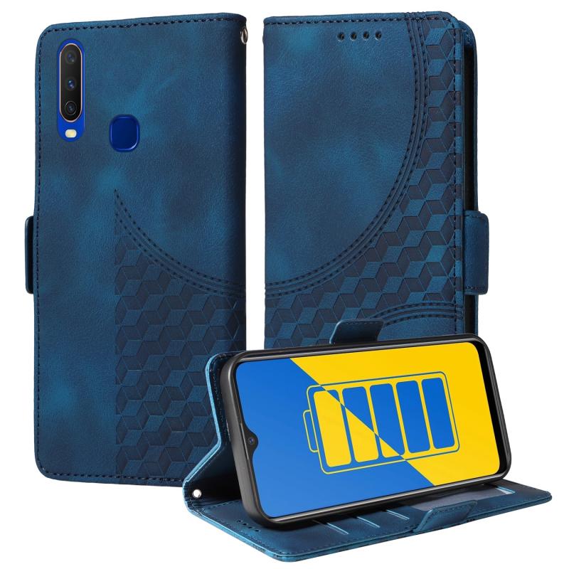 For vivo Y17 / Y15 / Y12 Embossed Rhombus Starry Leather Phone Case(Blue)