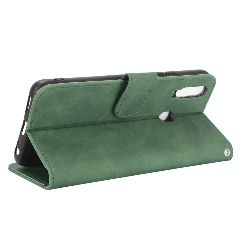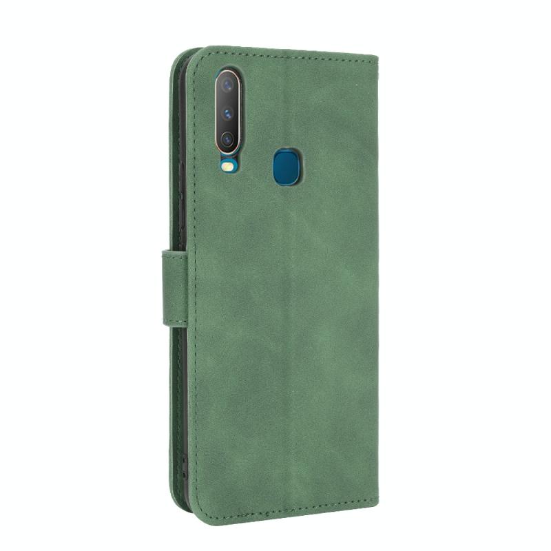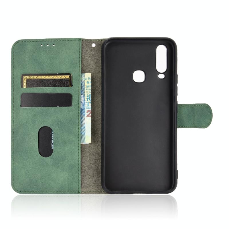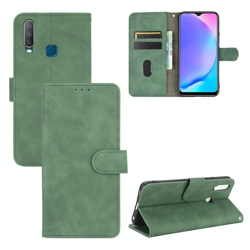 Θήκη για vivo Y17 / Y15 / Y12, μονόχρωμη, με αίσθηση δέρματος, μαγνητικό κούμπωμα, οριζόντια αναδιπλούμενη, με υφή μοσχαρίσιου δέρματος, από δερματίνη PU, με βάση στήριξης & θήκες για κάρτες & πορτοφόλι (πράσινο)