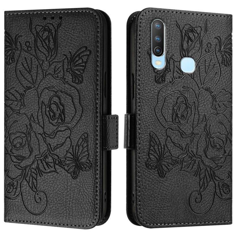 Θήκη τηλεφώνου από δέρμα με ανάγλυφο τριαντάφυλλο και προστασία RFID κατά της κλοπής για vivo Y17 / Y15 / Y12 / Y11 (Πράσινο)