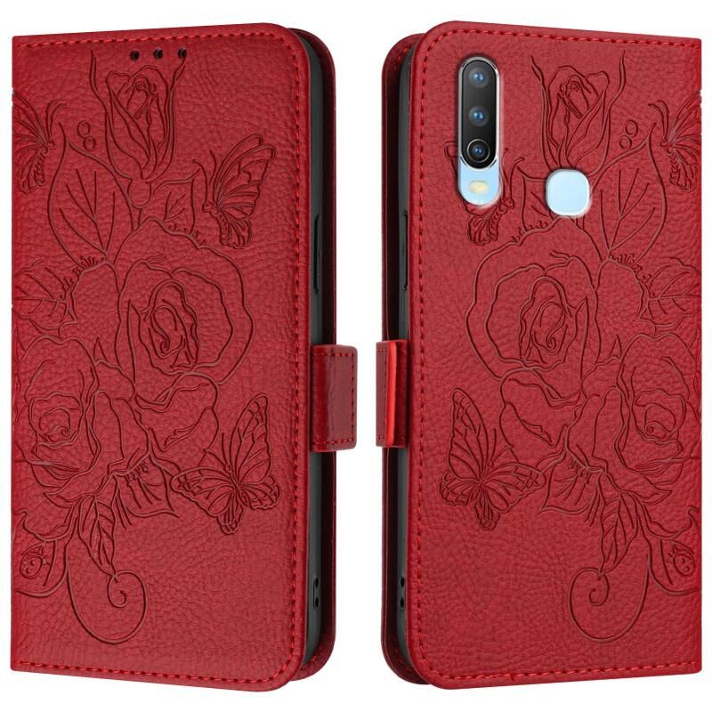 Θήκη τηλεφώνου από δέρμα με ανάγλυφο τριαντάφυλλο και προστασία RFID κατά της κλοπής για vivo Y17 / Y15 / Y12 / Y11 (Πράσινο)