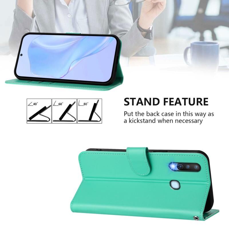 Θήκη τηλεφώνου από δέρμα με συμπαγή χρώματα για vivo Y17 / Y15 / Y12 / Y11 με κορδόνι (Καφέ)