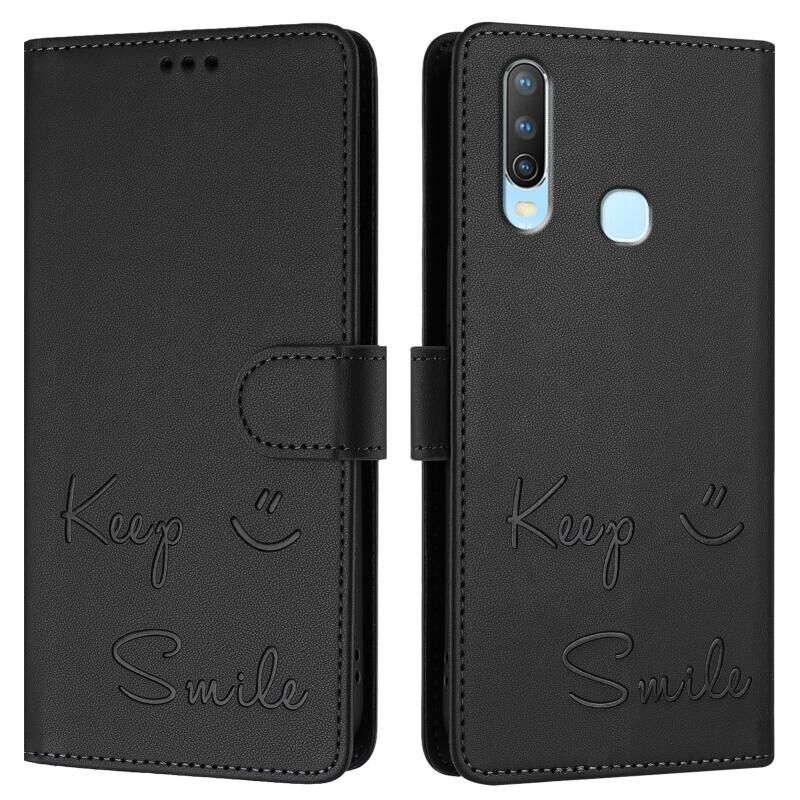 Για vivo Y17 / Y15 / Y12 / Y11 Χαμόγελο ανάγλυφο RFID δερμάτινη θήκη τηλεφώνου (Μαύρο)