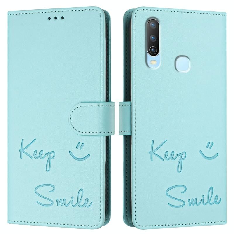 Για vivo Y17 / Y15 / Y12 / Y11 Χαμόγελο ανάγλυφο RFID δερμάτινη θήκη τηλεφώνου (πράσινο μέντα)