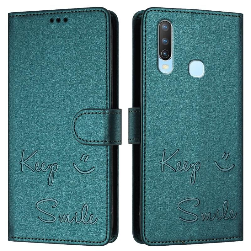 Για vivo Y17 / Y15 / Y12 / Y11 Χαμόγελο ανάγλυφο RFID δερμάτινη θήκη τηλεφώνου (Πράσινο παγώνι)