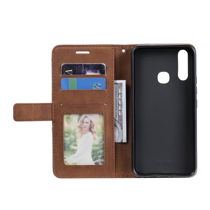 Για το vivo Y17 / Y3s / Y15 / Y12 / Y11 2019 Skin Feel Splicing οριζόντια Flip δερμάτινη θήκη τηλεφώνου (καφέ)