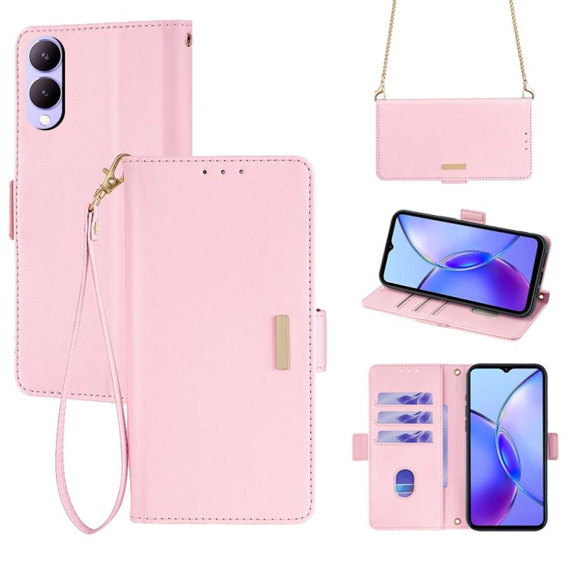 For vivo Y17s 4G Crossbody Chain Leather Phone Case(Pink)