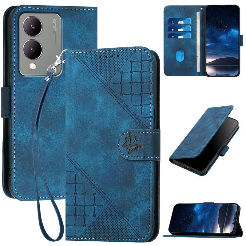 Θήκη τηλεφώνου δερμάτινη με ανάγλυφο σχέδιο πεταλούδας και κορδόνι για vivo Y17s 4G Global Grid (Σκούρο μπλε)