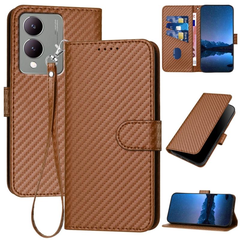 Θήκη τηλεφώνου από δέρμα με αγκράφα από ανθρακονήματα και λουρί για vivo Y17s 4G Global / Y28 5G India YX0070 (Καφέ)
