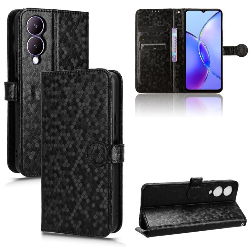 Θήκη τηλεφώνου από δέρμα με υφή κυψελωτού σημείου για vivo Y17s 4G (Μαύρο)