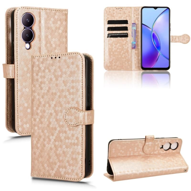 Θήκη τηλεφώνου από δέρμα με υφή κυψελωτού σημείου για vivo Y17s 4G (Μαύρο)