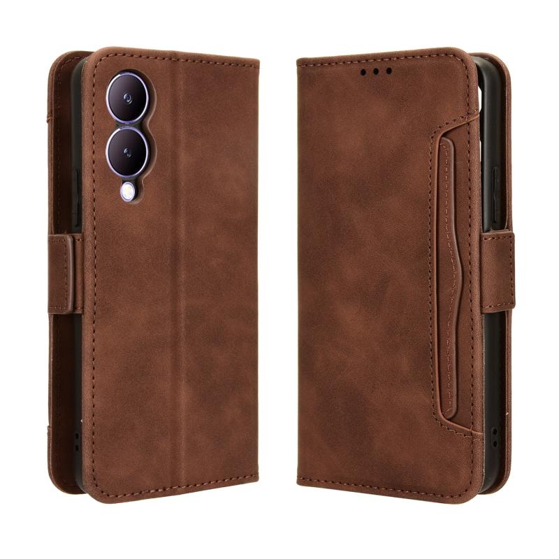 Θήκη τηλεφώνου από δέρμα για vivo Y17s 4G με υφή μοσχαρίσιου δέρματος, αίσθηση στην αφή και θήκες για κάρτες (Ροζ)