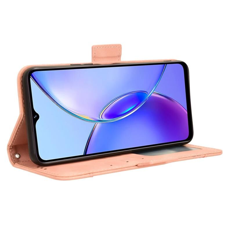 Θήκη τηλεφώνου από δέρμα για vivo Y17s 4G με υφή μοσχαρίσιου δέρματος, αίσθηση στην αφή και θήκες για κάρτες (Ροζ)