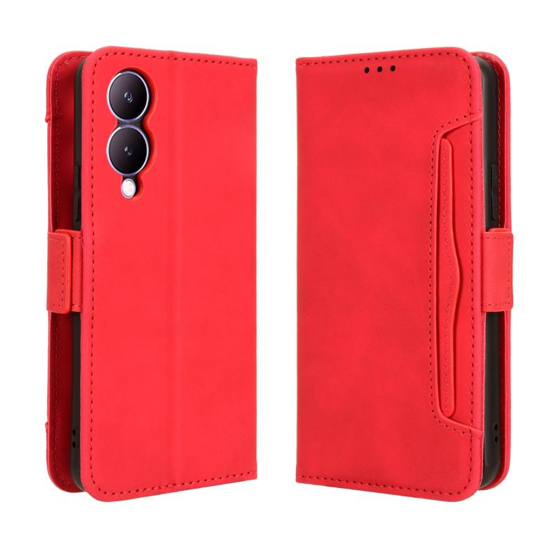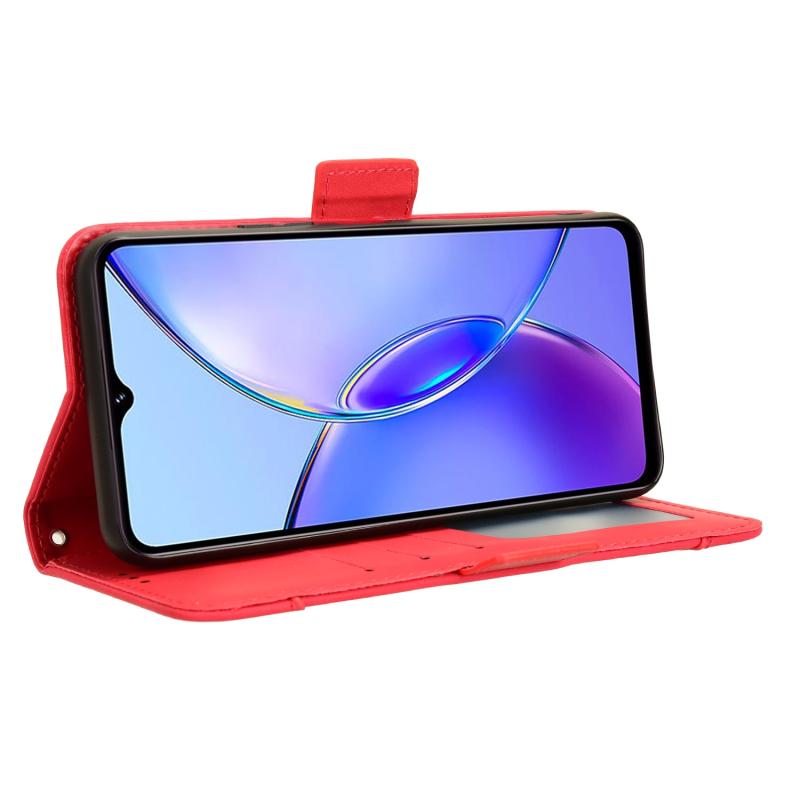 Θήκη τηλεφώνου από δέρμα για vivo Y17s 4G με υφή μοσχαρίσιου δέρματος, αίσθηση στην αφή και θήκες για κάρτες (Ροζ)