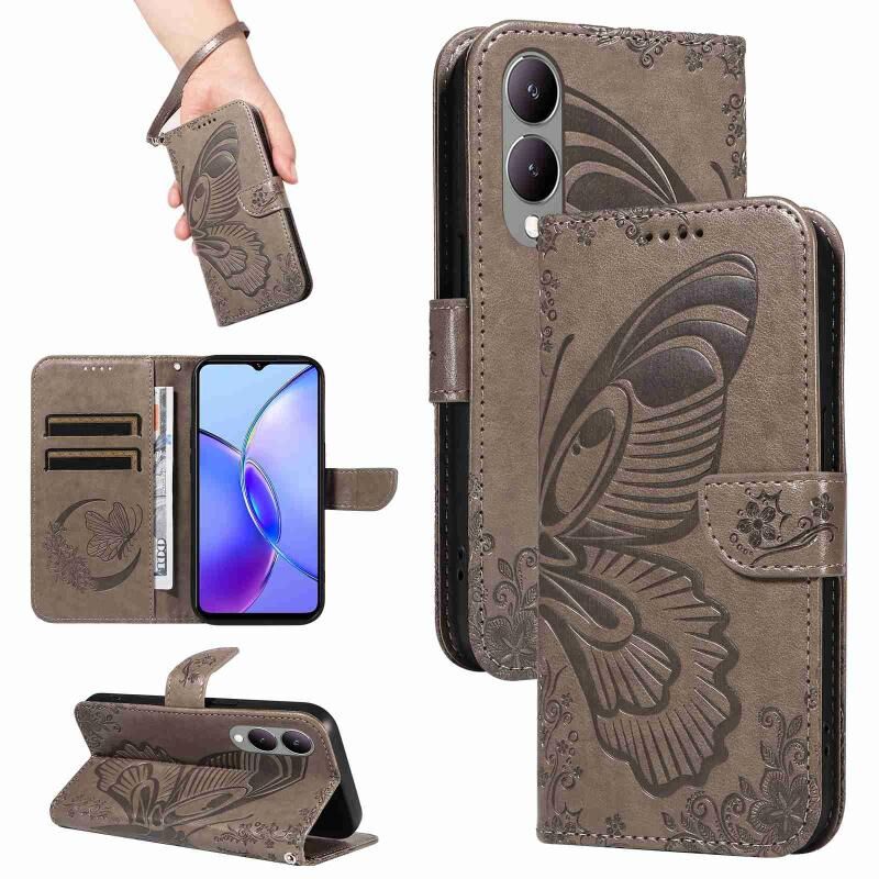 Θήκη τηλεφώνου από δέρμα με ανάγλυφο σχέδιο πεταλούδας Swallowtail για vivo Y17s 4G (Μπλε)